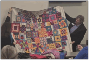 Carolyn brought and shared the baby quilt that Carolyn’s mother made for her granddaughter, Linda Potter. Carolyn introduced Sue Wilson. Sue works at The Quilted Fox. She spoke about sewing and quilting history and the exciting ways to make beautiful quilts using some new techniques and machines. She shared ways quilts are pieced and options for quilting by hand or machine. She brought many of her creations to share with us. She explained how some quilts are functional and some are decorative.