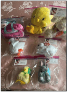 Susan Russ shared information about her name. Susan is the 8th in her family named ’Susan’ since 1749. Susan’s granddaughter (pictured above) is the 10th. The first Susan was Susan Ross Crane, the second wife of Henry Weaver, Susan Russ’ Revolutionary War patriot. Susan brought and shared the mirror, brush and button hook from a dresser set that was her grandmother’s. Growing up, Susan shared a bedroom with her maternal grandmother who lived with Susan’s parents. She also brought doll clothes from her childhood that her grandmother made for her. She shared memories about the items and the special meaning and importance they have for her.