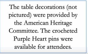 • Chapter recognized with a Certificate: Support of Purple Heart Patriots Certificate of Appreciation for Service to America