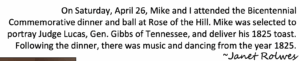 Julia Jacobs, SCCHS Director of Administration, read a short history of the actual events that led up to the bell tower lighting and the skirmishes that followed. And, how the “shot heard round the world” changed our country forever.