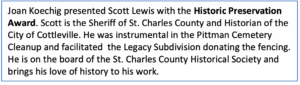 Dickherber, thank you for your leadership in chairing this important Revolutionary War Grave Marking Committee. As the City Council President of St. Charles, I am often called upon to discuss the future of our city—our budget, our infrastructure, our growth. But it is days like today, when we pause and intentionally look back, that truly define us. Our future is only as strong as the roots we choose to remember. We are here, on this hallowed ground, to dedicate this marker not just to a single life, but to a vital chapter in the history of our great city. We are here to ensure that the story of the Fort San Carlos/St. Louis Militiamen is not lost to the passing years, but is literally etched into the landscape of our community. Every city is a tapestry woven from the threads of individual lives. The thread that these 31 identified militiamen contributed was truly remarkable, and it shaped the very foundation upon which we stand. We are immensely grateful to the Daughters of the American Revolution for bringing their collective story back into the light. These men were more than just residents; they were Revolutionary War Patriots and co-founders of St. Charles. Their service during the American Revolution was critical. They were the defenders of the western frontier, part of the force that secured this vast territory from British-backed attacks. They helped define the western boundaries of our young nation the United States of America. But their commitment didn’t end with the war. They then made the courageous journey here, migrating with Louis Blanchette to settle St. Charles. They transitioned from soldiers to pioneers, taking on the arduous task of building our city and planting the seeds of American liberty and community life on the banks of the Missouri River. Their contribution was a selfless act of building—building homes, building commerce, and, most importantly, building the community that we still cherish today. Today, we honor that act of legacy. Why should we care about a grave marking ceremony? Because history is not some dusty collection of facts; history is our identity. It dictates our values, informs our decisions, and inspires our children. These markers are a visible commitment from the City of St. Charles—and from all of us—to the principle that every life matters and every contribution deserves recognition. We are a stronger, more resilient city because of the foresight and efforts of these revolutionary patriots who chose to make their home here. By gathering on this date, September 27th 2025, we confirm a reciprocal covenant: these militiamen helped to create this place, and in return, we promise to remember them. We ensure that future generations walking through this cemetery will stop, read these stones, and ask: “Who were these founders?” And thanks to the NSDAR, we will have the definitive answer. This is how a city maintains its soul. Let us now reflect on the profound, quiet impact that a good life lived, and a brave cause served, can have. The stories we tell, and the memories we preserve, are the true treasures of Saint Charles. To the Saint Charles Chapter, Daughters of the American Revolution, thank you for your commitment to this invaluable work. You are the guardians of our collective memory, connecting the heroism of 1776 directly to the prosperity of today. As the marker is unveiled today, let it be a sign that the life and legacy of the Fort San Carlos/St. Louis Militiamen remain a cornerstone of our community. May we continue to honor their courage as we build a future worthy of their enduring spirit.