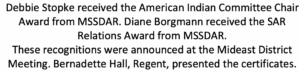 *NSSDAR Awards were announced at the Mideast Missouri District meeting and present by Regent, Bernadette Hall.