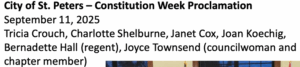 Constitution Week proclamations at Weldson Springs and St. Peters.