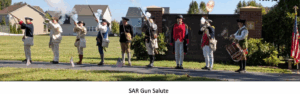 “The Annual Commemoration of The Battle of Fort San Carlos-May 26, 1780 was held on Sunday, May 25, 2025 in Ste. Genevieve, MO – 245 years. Francois Valle led 60 men from there to fight in the Battle. At the cemetery, the SAR remembered 5 men who fought that day. A memorial service was held at the Orris Theater for those who died. Both the DAR and SAR helped with the Rose Ceremony.”