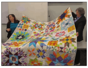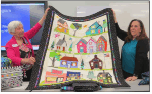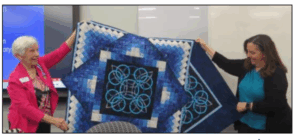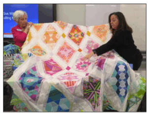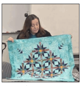 Carolyn brought and shared the baby quilt that Carolyn’s mother made for her granddaughter, Linda Potter. Carolyn introduced Sue Wilson. Sue works at The Quilted Fox. She spoke about sewing and quilting history and the exciting ways to make beautiful quilts using some new techniques and machines. She shared ways quilts are pieced and options for quilting by hand or machine. She brought many of her creations to share with us. She explained how some quilts are functional and some are decorative.