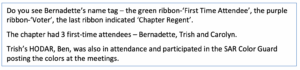 • Tricia Crouch – recognized with a Certificate for Support of DAR/SAR/S.R. Relations