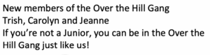 Are you 36 years or older, old enough to know better, but have the skills and talent to just let your hair down and have fun? Then the Over the Hill Gang is for you! If you’re not a junior, you can be a member! Each year the Over the Hill Gang has its annual meeting at state conference. The Over the Hill Gang also sponsors the “After Hours Show” immediately after the Saturday Night Banquet. Skits and performances, matching the year’s theme, are abundant and guaranteed to keep you laughing long into the night. But, why just sit and watch the show when you can be part of the fun! Come join us! A lifetime membership in our club is just $5 and an application away. Applications are only available at state conference. The object of the “Over the Hill Gang!”: Supports the Juniors and the State Outstanding Junior’s trip to Continental Congress (if she elects to go). It also provides a monetary award for the third-place winner of the DAR Good Citizen Award.