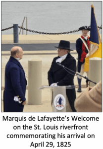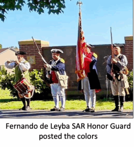 “The Annual Commemoration of The Battle of Fort San Carlos-May 26, 1780 was held on Sunday, May 25, 2025 in Ste. Genevieve, MO – 245 years. Francois Valle led 60 men from there to fight in the Battle. At the cemetery, the SAR remembered 5 men who fought that day. A memorial service was held at the Orris Theater for those who died. Both the DAR and SAR helped with the Rose Ceremony.”
