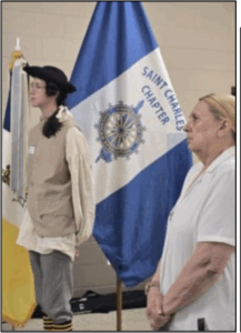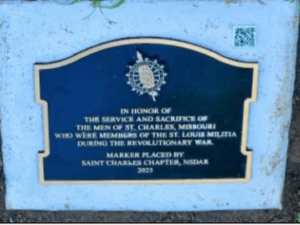 The Saint Charles Chapter Daughters of the American Revolution unveiled a new grave marker honoring Revolutionary War patriots who served in the Fort San Carlos/St. Louis Milita at the Saint Charles Borromeo Catholic Church Cemetery. The event was held at 10 a.m., Saturday, Sept. 27, 2025, at the cemetery located on West Randolph Street in St. Charles. DAR chapter members worked alongside St. Charles Borromeo Catholic Church parishioners to assist in cleaning up their cemetery with careful attention on all known veterans’ headstones. Thirty-one men that were in the St. Louis/Fort San Carlos militia were honored. These men and their families sacrificed much during the Revolutionary War and were some of the first settlers in St. Charles. The Fernando de Leyba Chapter of the Sons of the American Revolution and the Nathan Futrell Chapter of the C.A.R. helped in the celebration. More than 80 people attend including State Vice Regent, Becky Osborne and other State Chairs and Regents. Michael Galba, President of the St. Charles City Council gave a speech. The SAR gave a gun salute. Chapter Member Jeanne Middleton unveiled the marker, because she is descended from six of the men on the list!