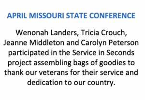 • Jeanne Middleton: recognized with a Certificate of Appreciation: Use of Technology Skills for Benefit of Missouri DAR