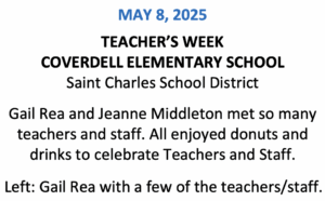 In honor of Veterans Day, 100 breakfasts were served by chapter members to veterans and first responders at Veterans of Foreign Wars (VFW) 2866 St. Charles. The chapter also presented the VFW post with two flag display certificates. These certificates are awarded to homes and businesses that properly display the flag.