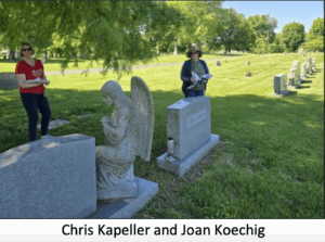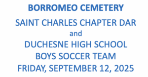 On Wednesday, April 23, 2025, the Duchesne High School girls’ soccer team joined us for a short lesson on the history of Borromeo Cemetery and headstone cleaning with Bernadette Hall and Maggie Huggard. What a wonderful experience! The Historic Preservation Committee and the Conservation Committee are working together to establish a ‘Never Forget Garden’ in St. Charles Borromeo Cemetery. The benches are installed and 2 plants in place (see above). There are plans to add more plants when the season is correct to add them. Time was spent with the Duchesne girls’ soccer team cleaning headstones and teaching them about the different types of headstone material and where it comes from along with the different types of grasses in the cemetery and of course a history lesson was included. Plans are being formed to establish an ongoing relationship with Duchesne High School and the care of the cemetery.