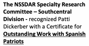 • Suzanne Weaver – recognized with a Certificate for Outstanding Service and Commitment to Patriot Records Project
