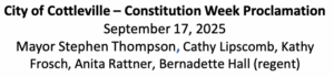 Constitution Week proclamations at Weldson Springs and St. Peters.